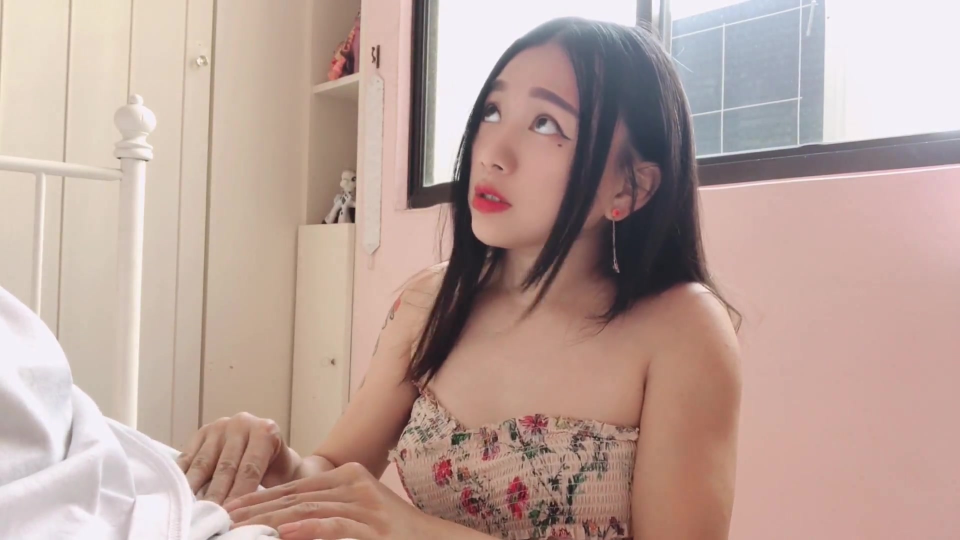 胸大性感的美女豆芽姐晚上喝醉酒误闯隔壁陌生男邻居家倒在床上睡着