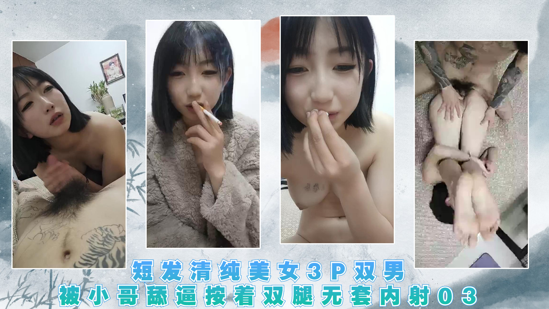 短发清纯美女3P双男被小哥舔逼按着双腿无套内射03。