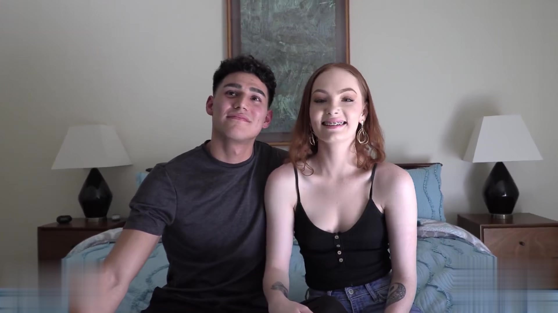 顽皮的大学女生凯蒂·库什展开她的阴部 引诱范怀尔德把他的老二放进去