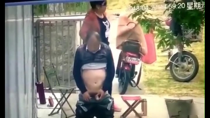 保安翻看监控农家小院大爷和姘头大白天在门前老汉推车一边看一边调侃