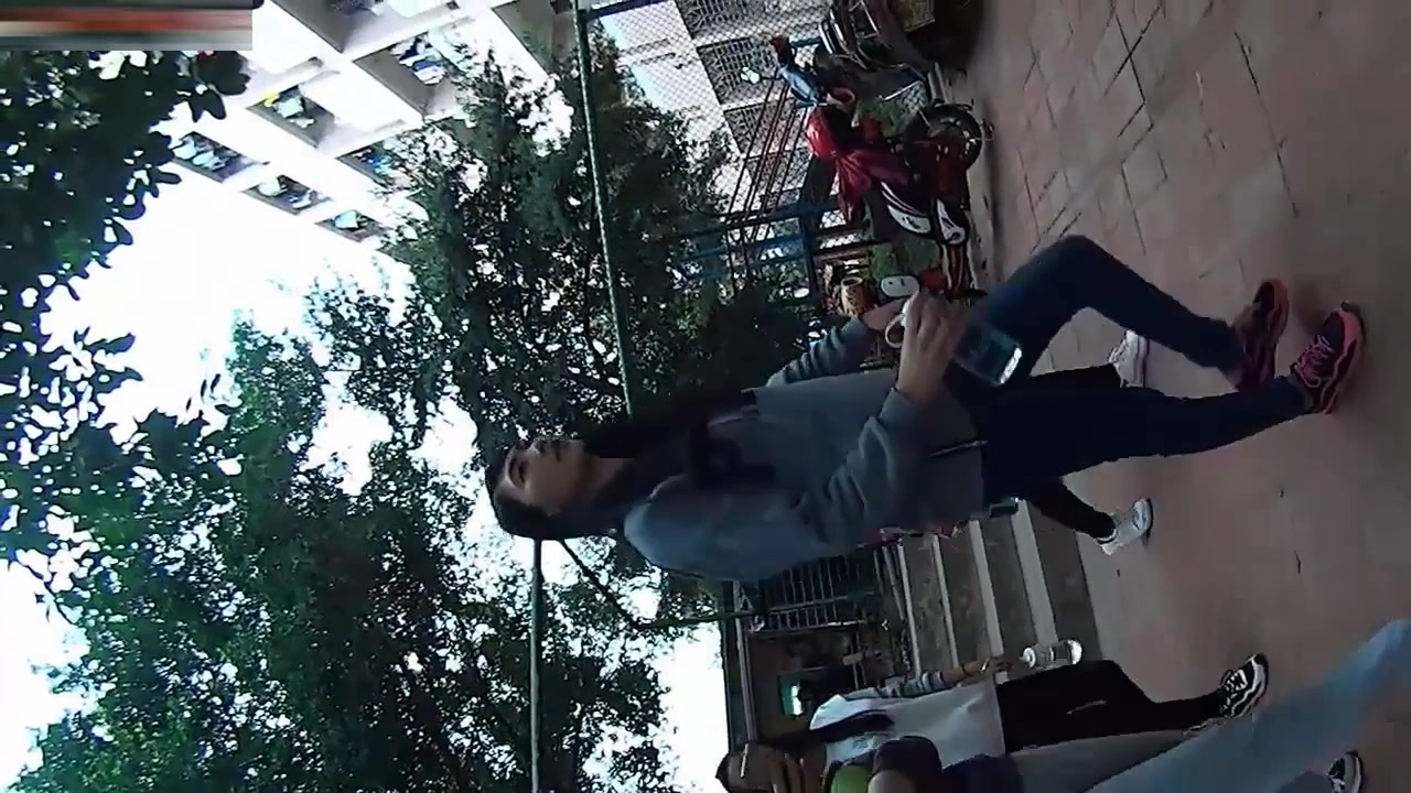 晨起公园锻炼搭讪性感连衣裙美女到路边小道打野战 路上人来人往女说 有人要来了