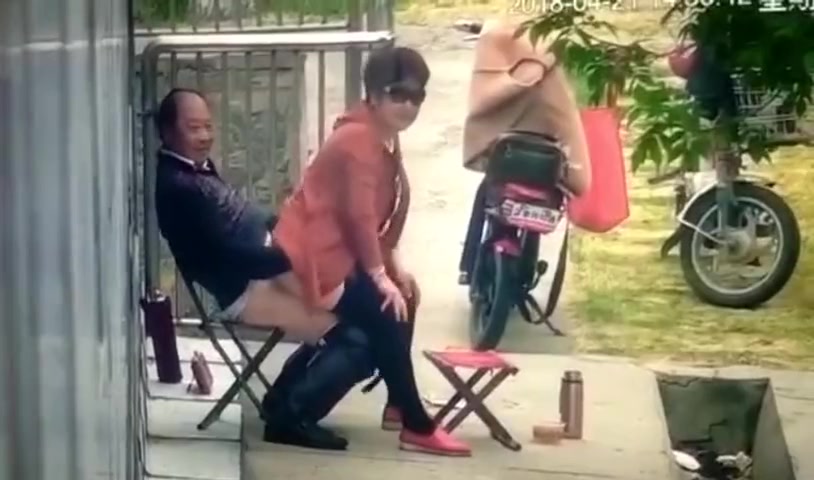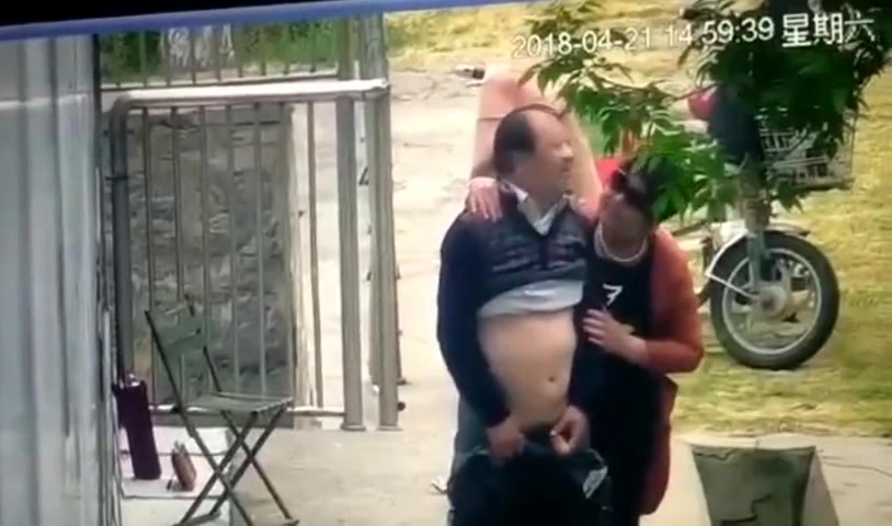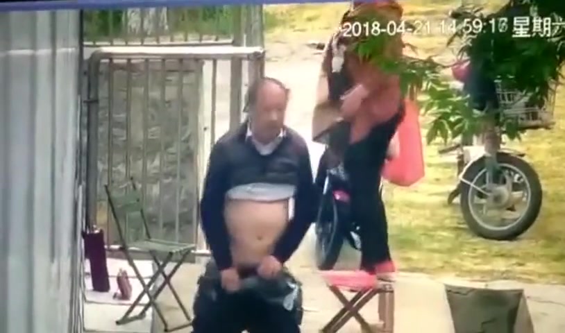 保安翻看监控农家小院大爷和姘头大白天在门前老汉推车 一边看一边调侃