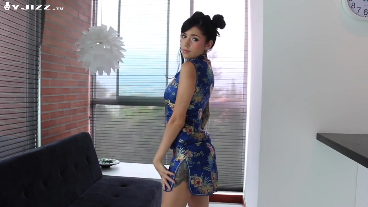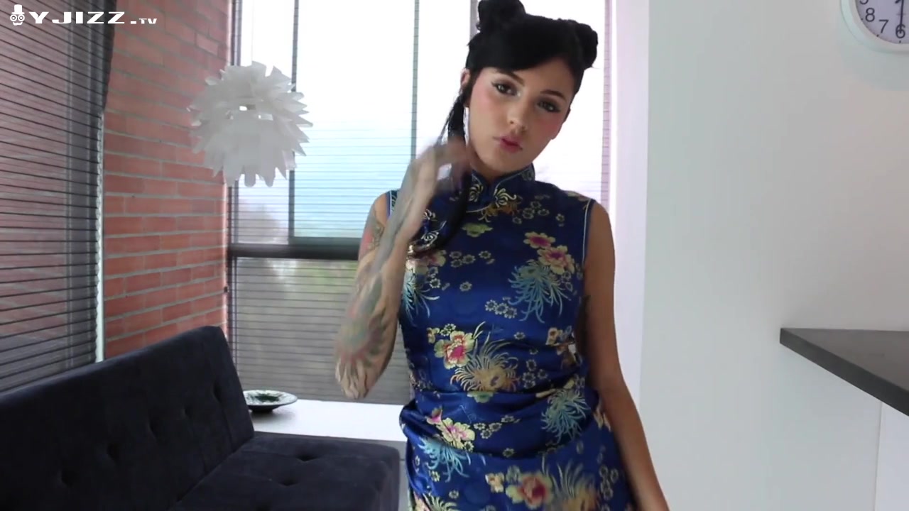 花臂纹身巨乳妹子旗袍诱惑沙发上道具自慰