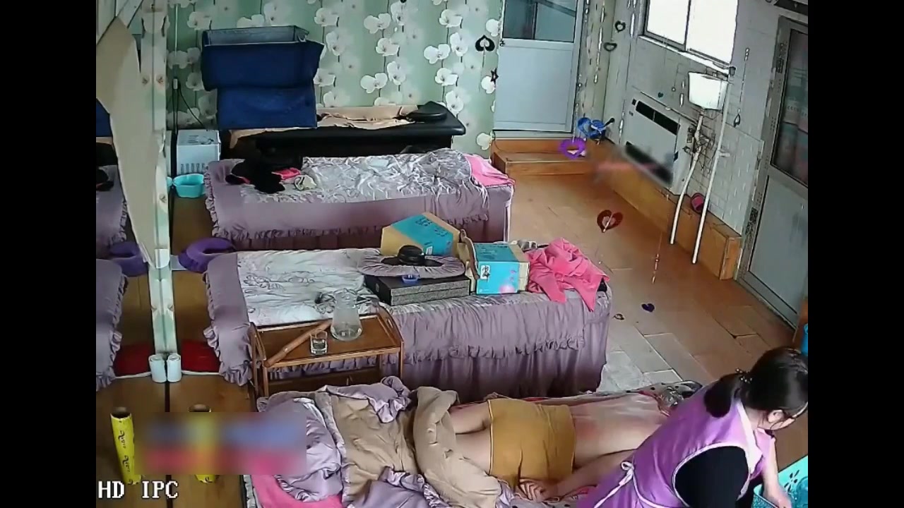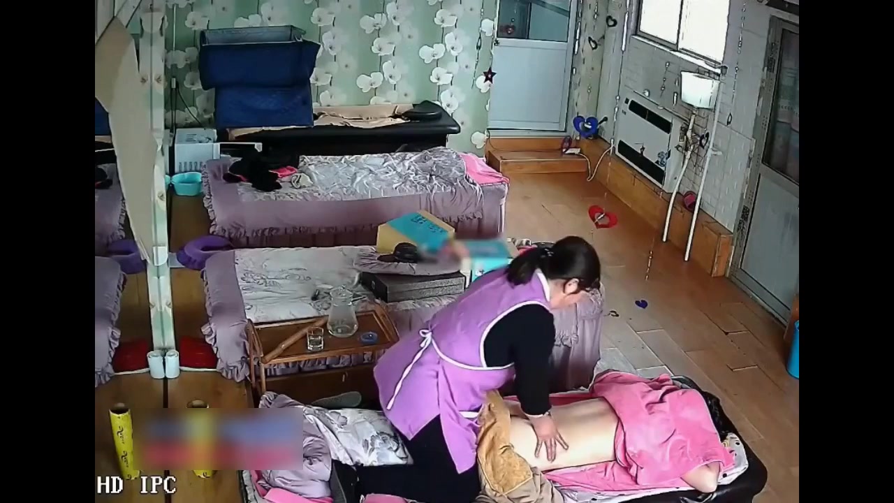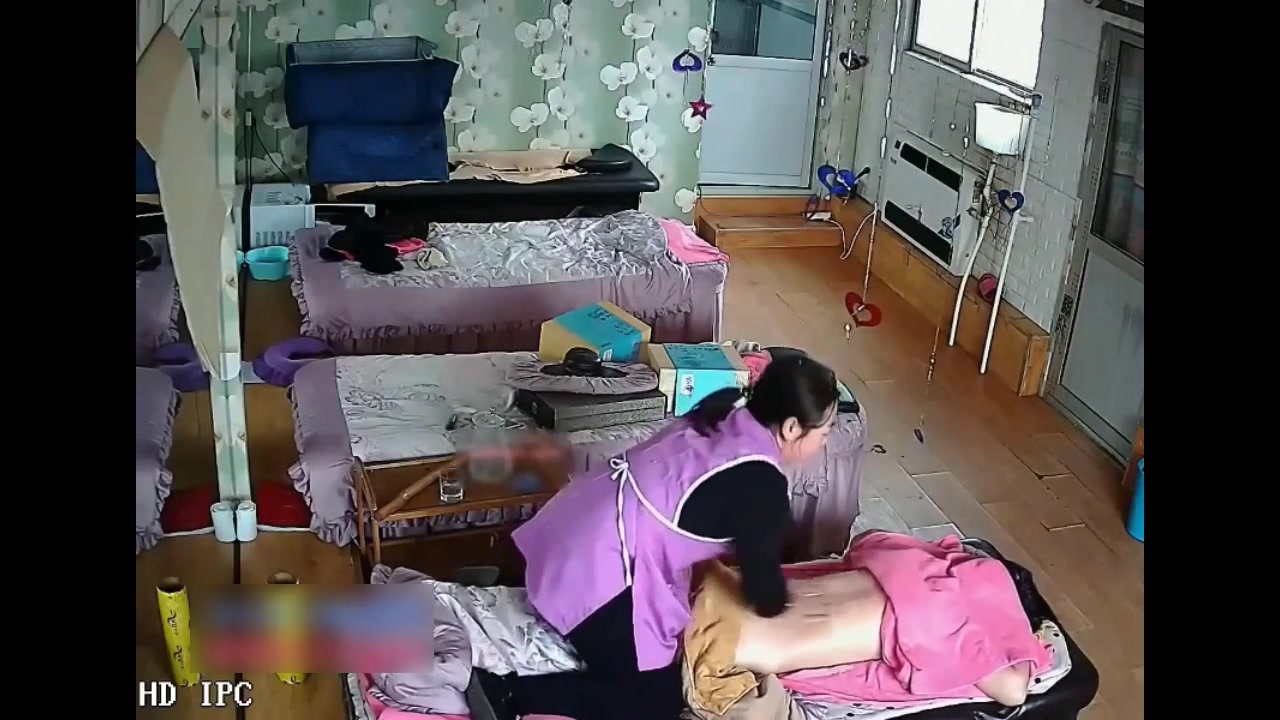 保健养生馆里的监控视频偷拍女客人全裸拔火罐